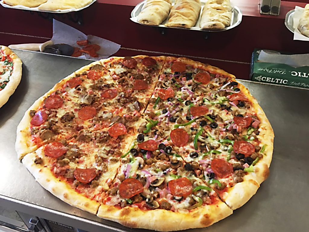 Sausage, Pepperoni, Ham, Fresh mushrooms, Green Peppers, Onions, Black Olives, Pineapple, Bacon, Banana Peppers, Jalapeno, Extra Cheese